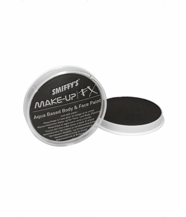 Face & Body make up FX zwart (16ml). De make-up is gemakkelijk aan te brengen met een sponsje of kwast en kan weer gemakkelijk verwijderd worden.